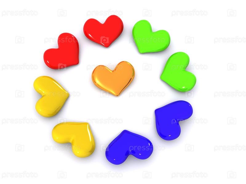 Нарисованные разноцветные сердца на белом фоне