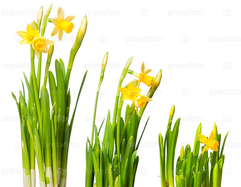 Желтые нарциссы на белом фоне
