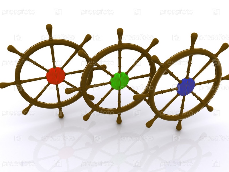 Разноцветные штурвалы на белом фоне