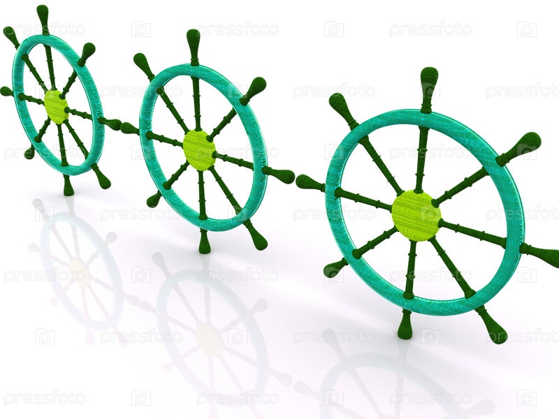 Разноцветные штурвалы на белом фоне