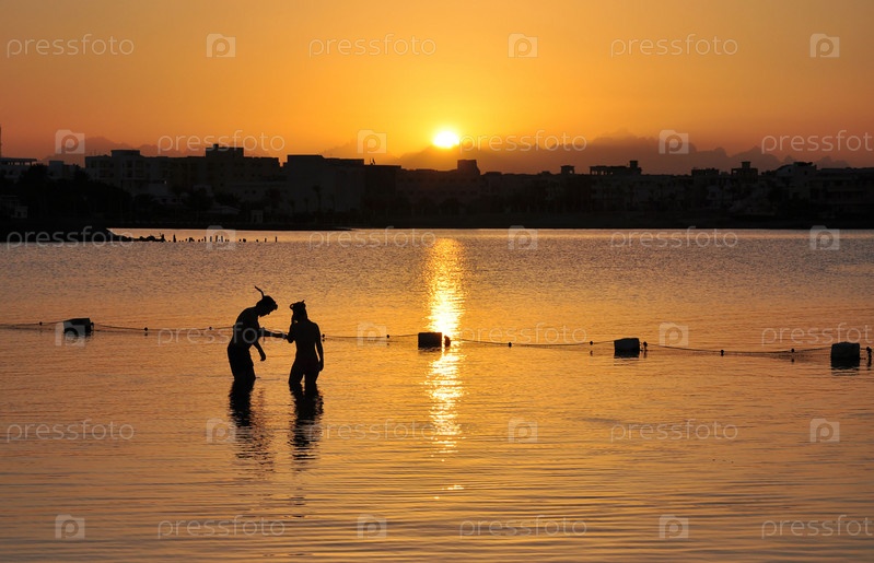 Молодые дайверы на закате