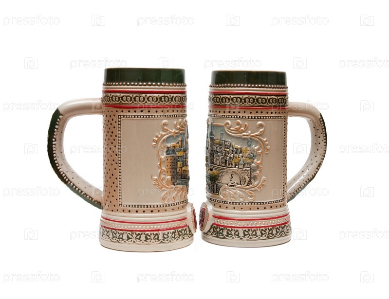 Пивные кружки на белом фоне