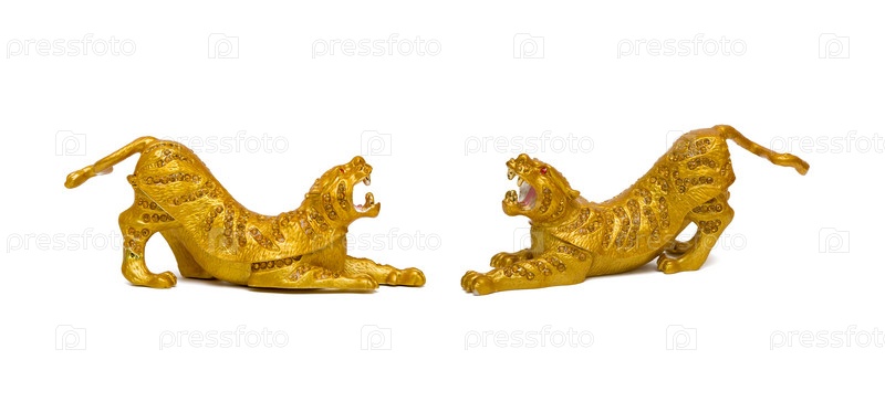 Фигурки двух тигров на белом фоне
