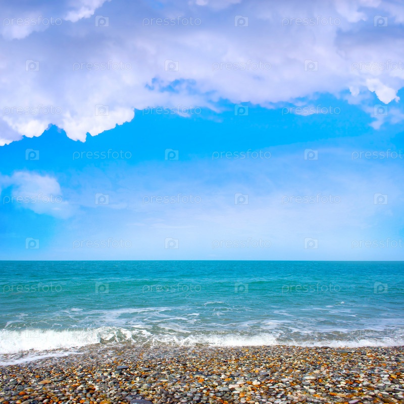Голубое облачное небо и морской пляж