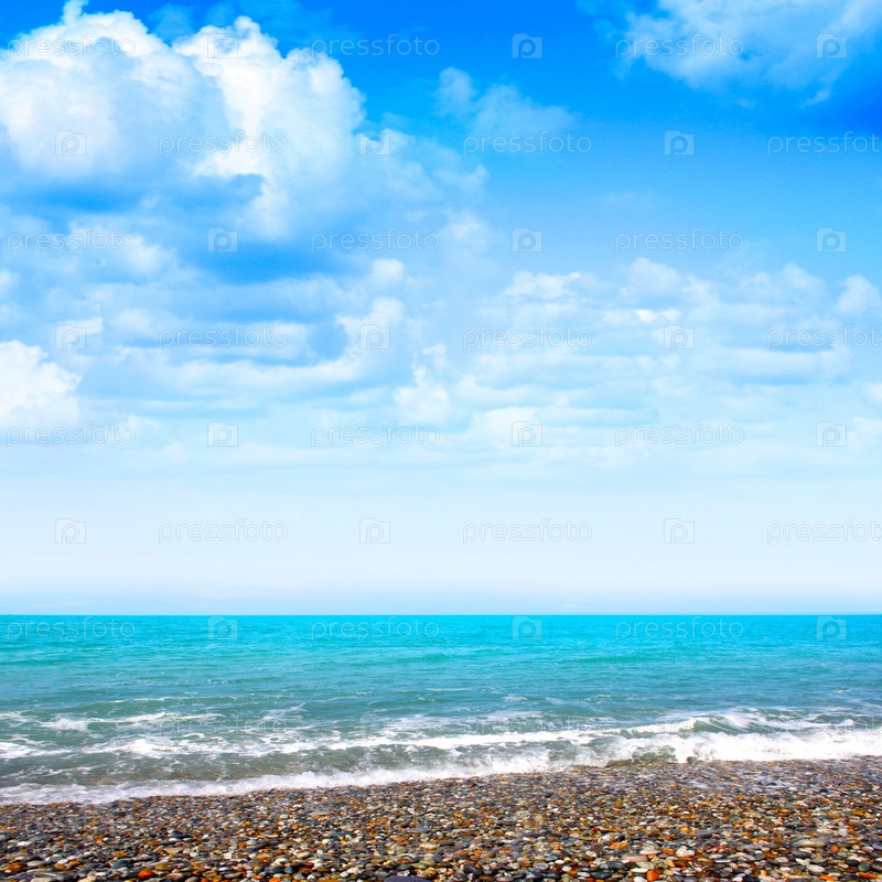 Морской берег на фоне облачного неба