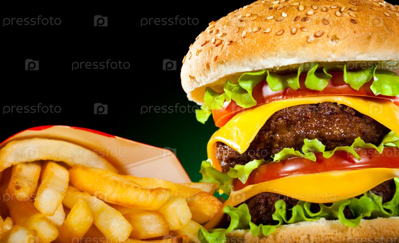 Большой гамбургер и картофель фри