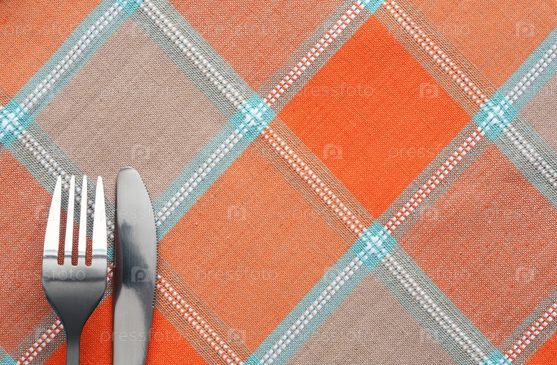 Вилка и нож на клетчатой скатерти