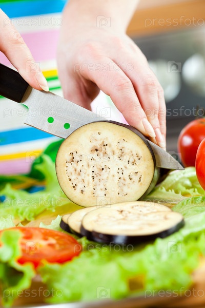 Женщина режет овощи
