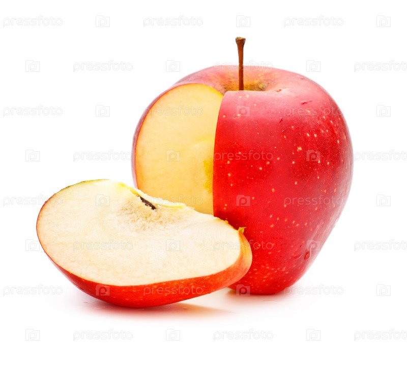 Разрезанное красное яблоко на белом фоне