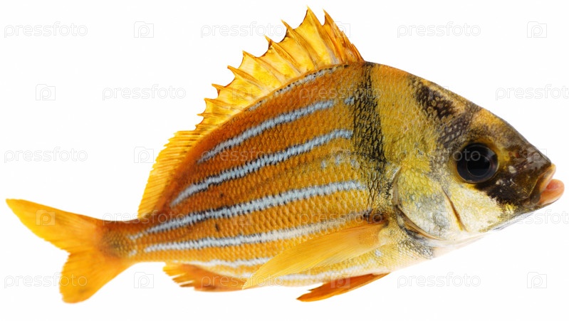 Золотая свежая рыба на белом фоне