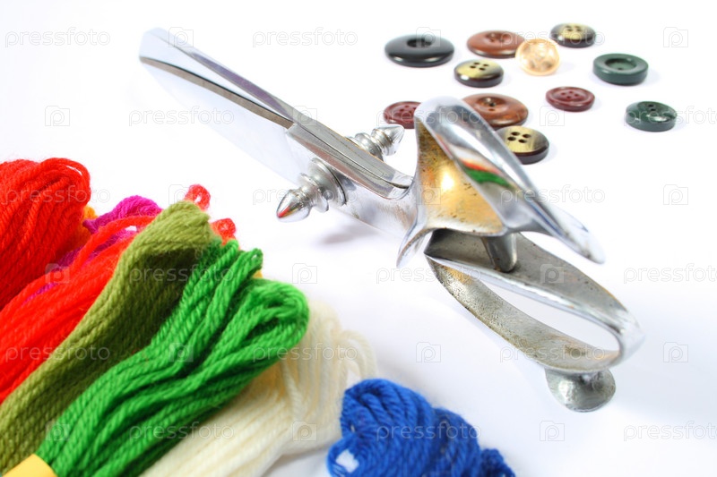 Старые инструменты дизайнера ткани на белом фоне
