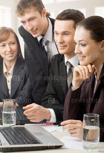 Команда успешных улыбающихся молодых бизнесменов