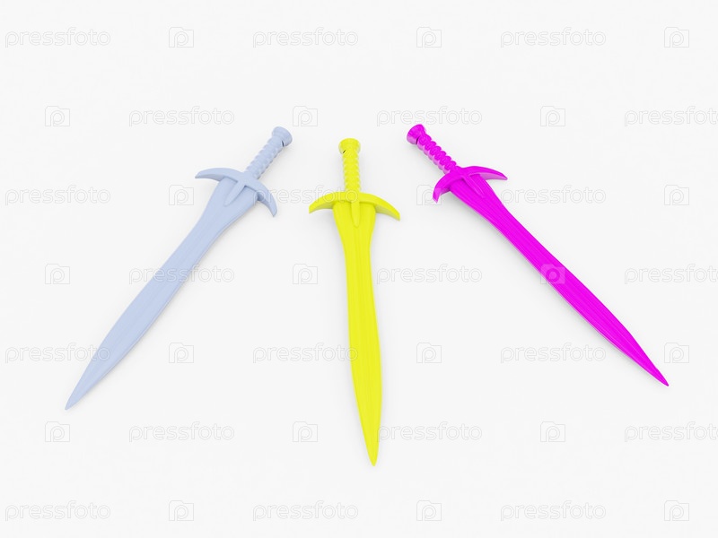Иллюстрация с тремя цветными мечами на белом фоне