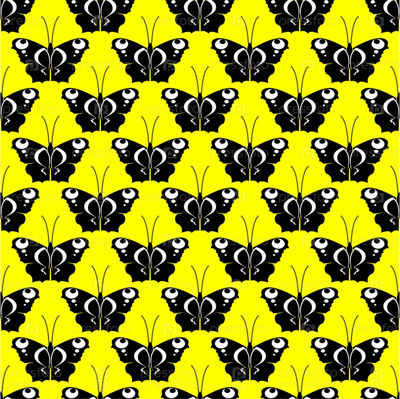 Шаблон из черных бабочек на желтом фоне