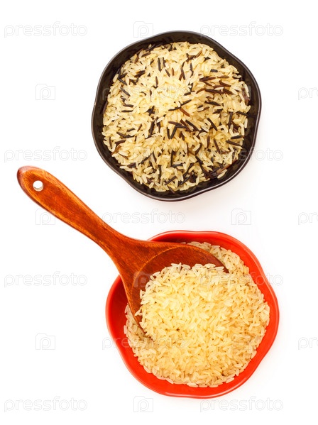 Две миски с рисом крупным планом на белом фоне