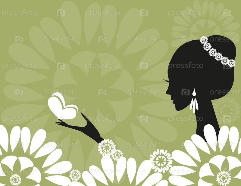 Красивый рисунок с женским силуэтом на зеленом фоне