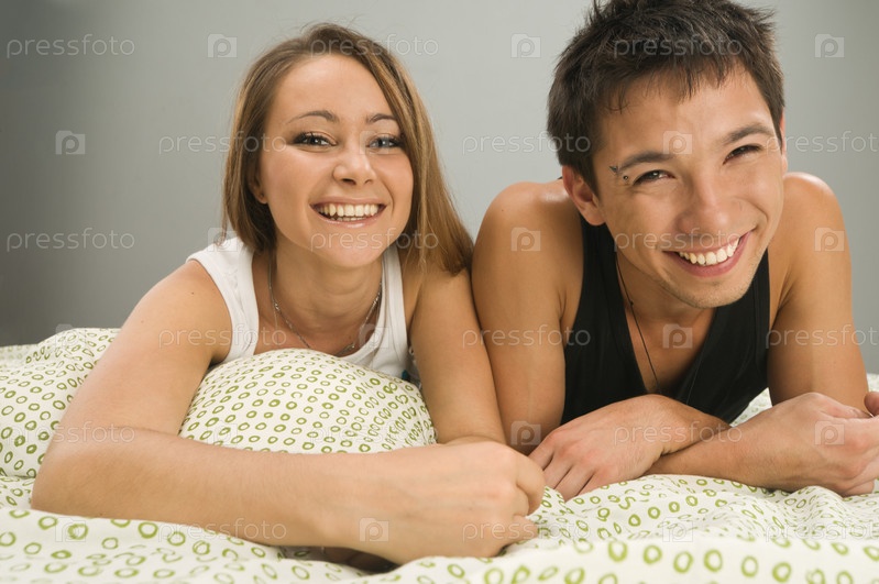 Счастливая молодая пара в постели