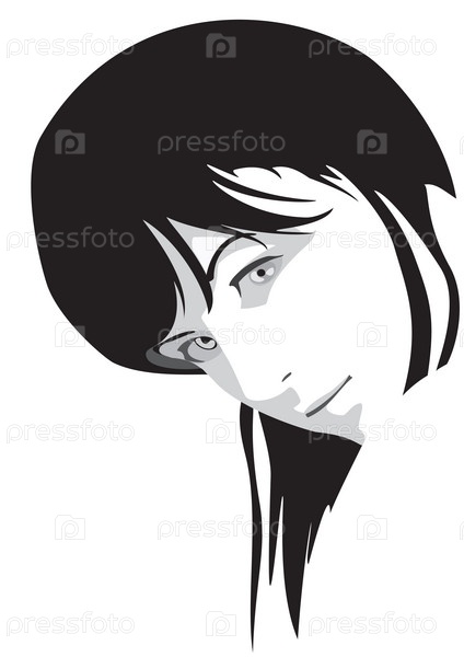Растр иллюстрации, женский портрет графика на белом фоне