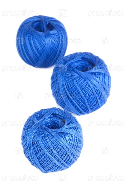 Синие клубки шерсти, изолированные на белом фоне