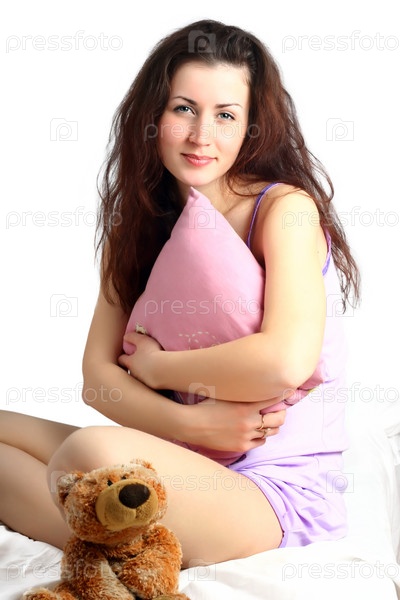 Портрет молодой девушки с игрушечным медвежонком