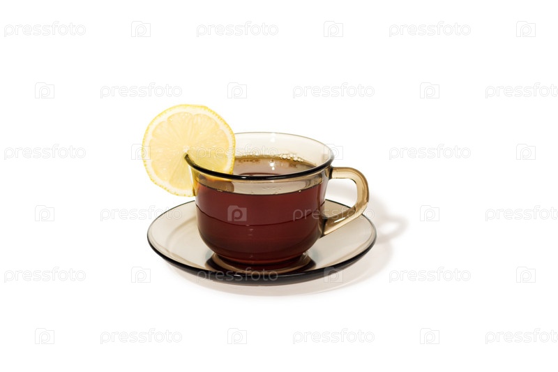 Чашка чая с лимоном на белом фоне