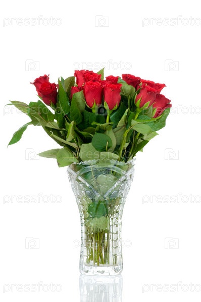 Букет роз в вазе, изолированный на белом фоне
