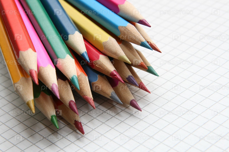 Цветные карандаши на клетчатой бумаге