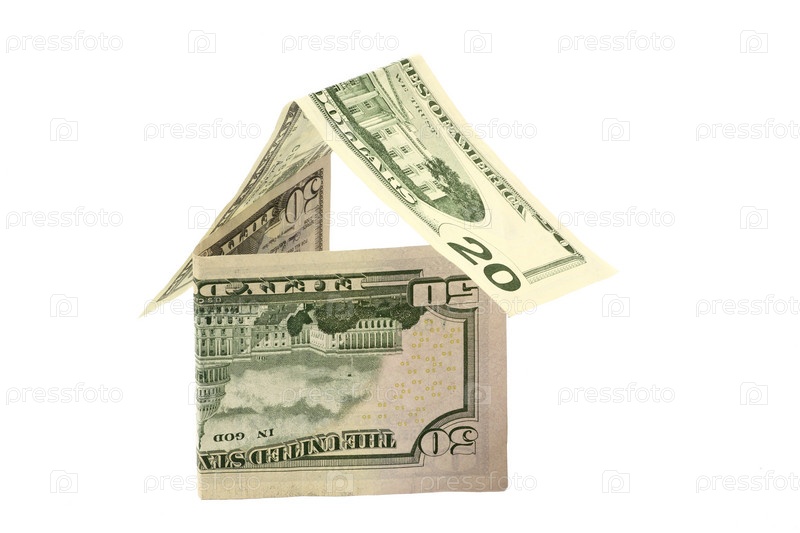 Дом из долларов на белом фоне