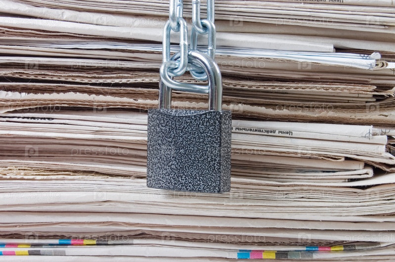Замок, висящий на фоне стопки газет