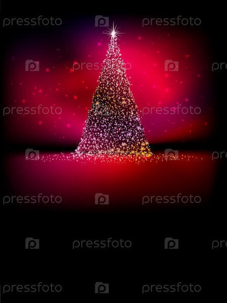 Золотая рождественская елка на красном фоне. EPS 10