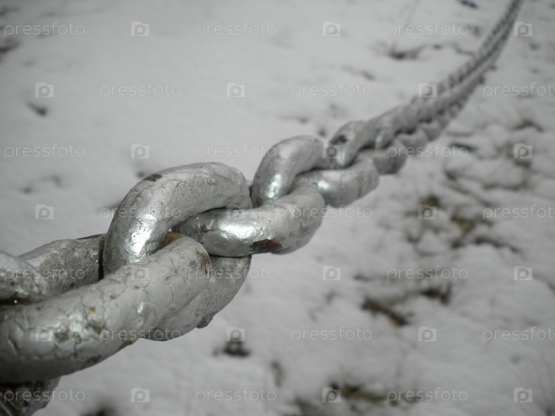Металлическая цепь, висящая над снегом