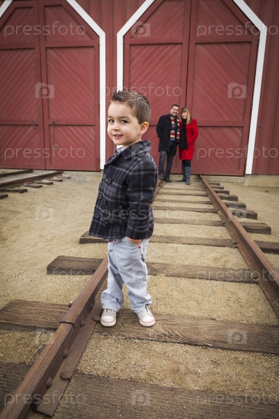 Мальчик с родителями в железнодорожном депо