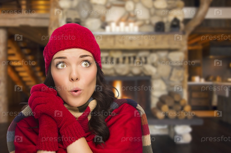 Девушка наслаждается теплом камина в деревенском доме