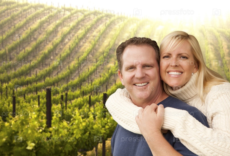 Счастливая пара на красивом винограднике