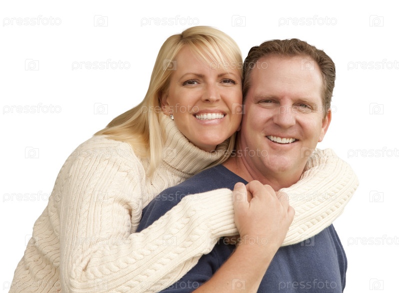 Счастливая обнимающаяся пара, изолированная на белом