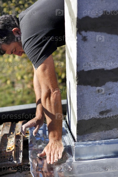 Строитель закладывает фундамент колонны