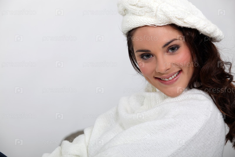 Молодая симпатичная брюнетка в шерстяном берете