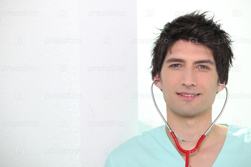 Медбрат со стетоскопом в ушах