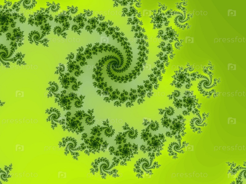 Зеленый фрактальный фон со спиралями