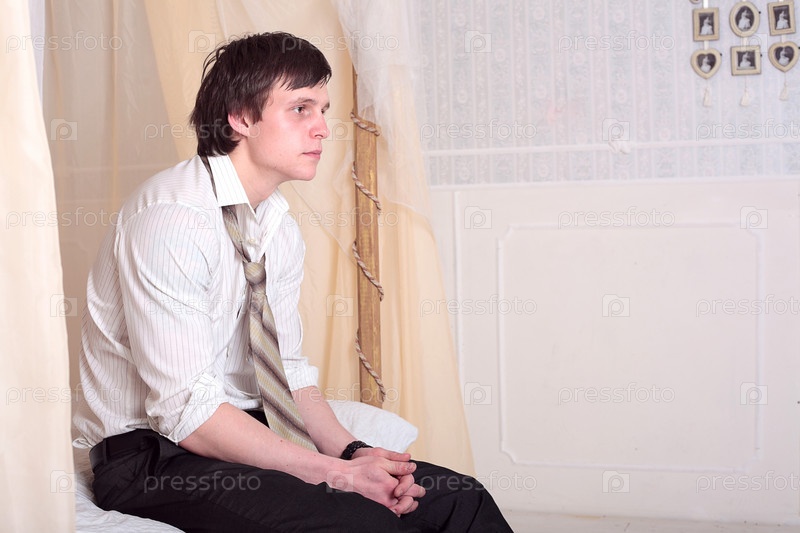 Молодой мужчина сидит на подоконнике