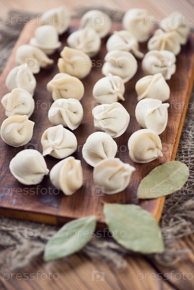Сырые пельмени на разделочной доске