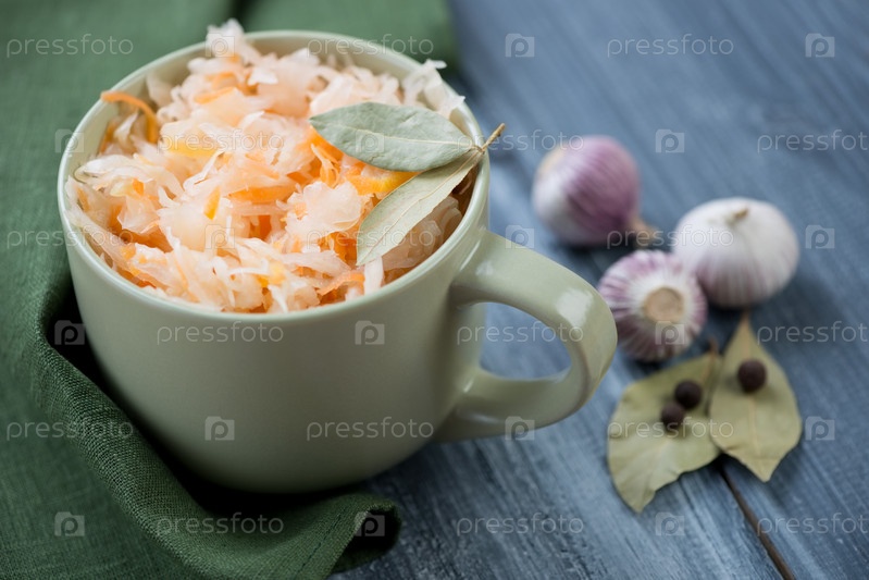 Квашеная капуста, лавровый лист, чеснок и черный перец