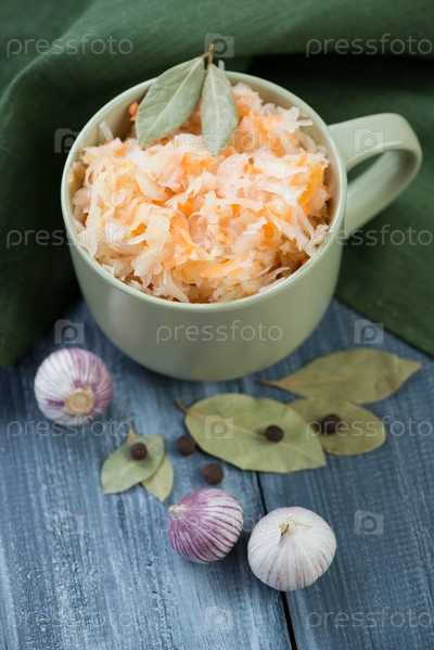 Квашеная капуста, лавровый лист, чеснок и черный перец