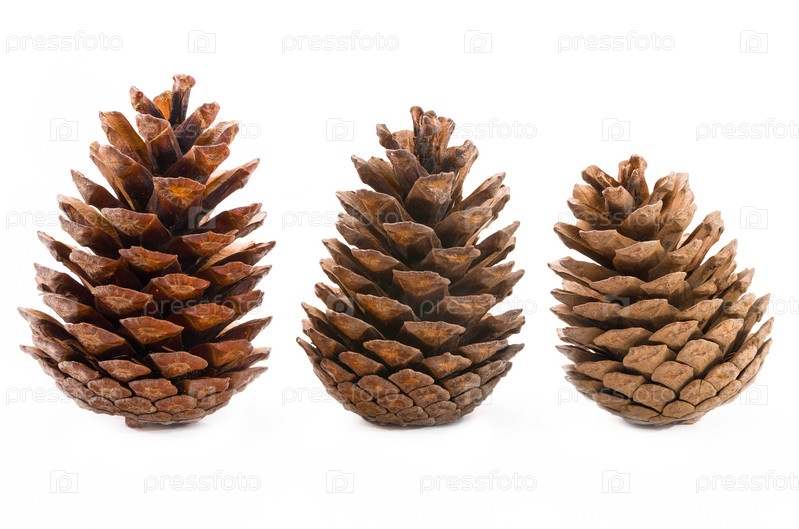 Хвойные шишки на белом фоне