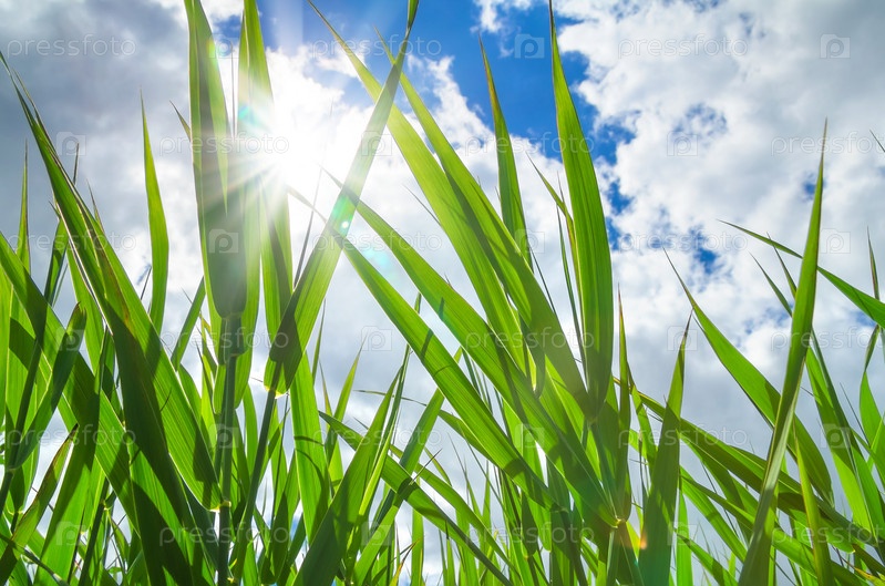 Зеленый камыш на фоне неба