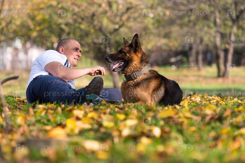 Мужчина с немецкой овчаркой