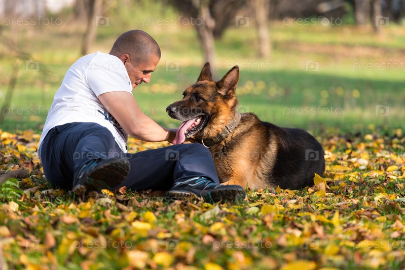 Мужчина с немецкой овчаркой