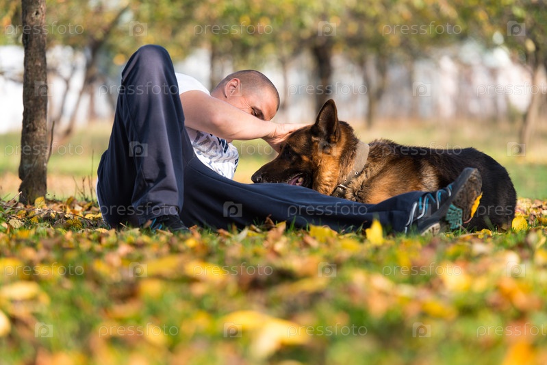 Мужчина с немецкой овчаркой