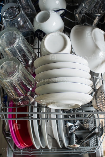 Посудомоечная машина после мойки посуды