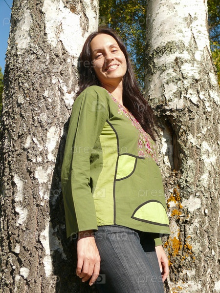 Красивая девушка у двух берез
